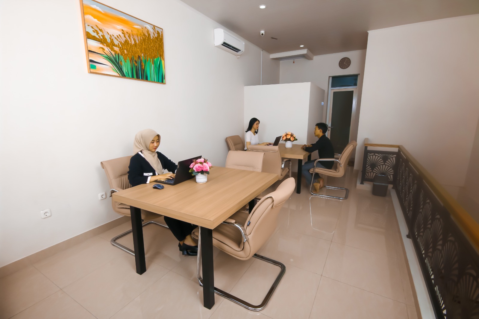 Ruang kerja premium yang nyaman dan kondusif, dilengkapi fasilitas lengkap untuk mendukung kolaborasi, fokus, dan produktivitas bisnis Anda.